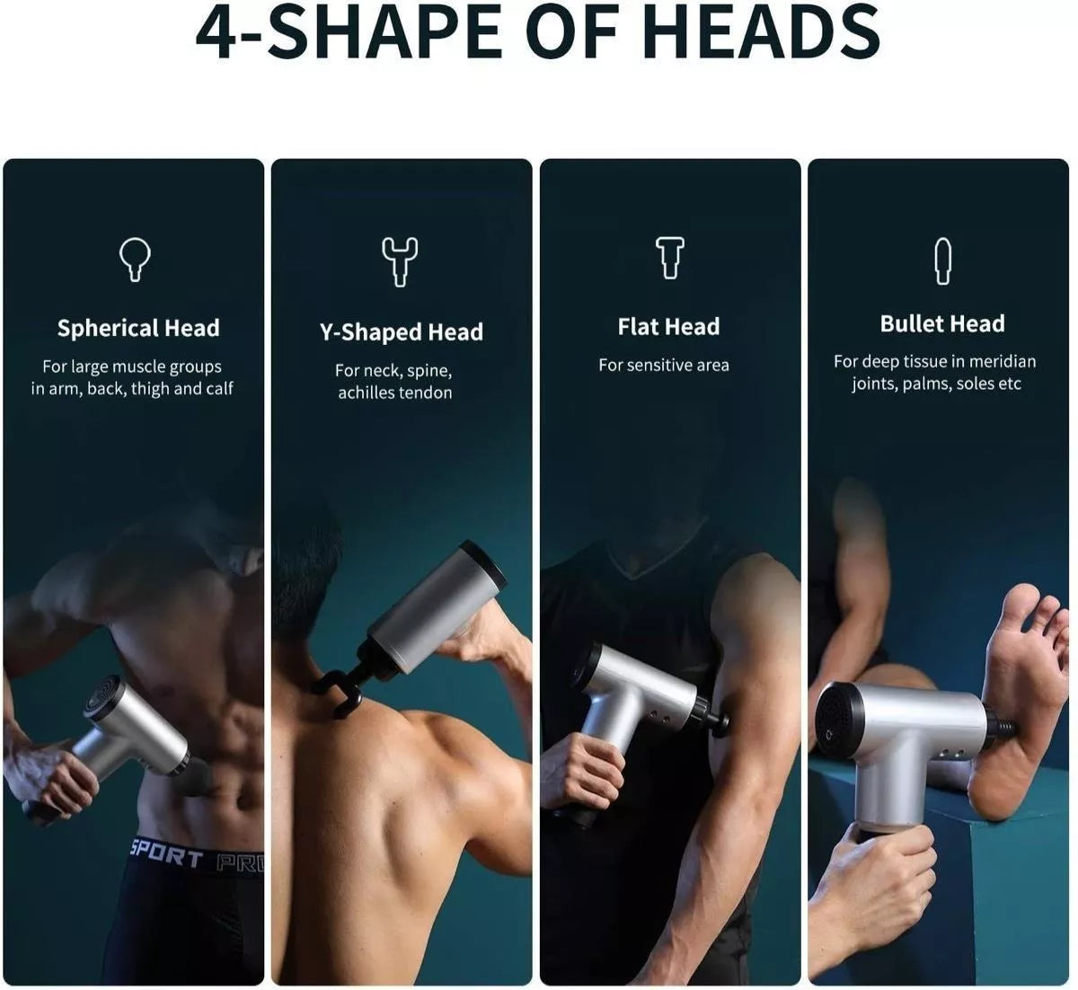 🔹 4 cabezales intercambiables: Para cada grupo muscular específico